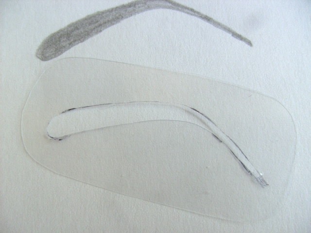 На фото трафарет для бровей (своими руками, как видно, его сделать просто) имеет свои параметры. Которые зависят от индивидуальной формы. По этой причине необходимо наложить изделие на брови и отметить три основные точки. Речь идет о середине ленты, которая соответствует середине расстояния между бровями, начале бровей и точке изгиба.