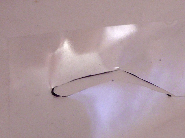 Затем уже приступают к перерисовке формы на саму пластиковую основу. Необходимо вырезать рисунок и приложить к будущему трафарету.