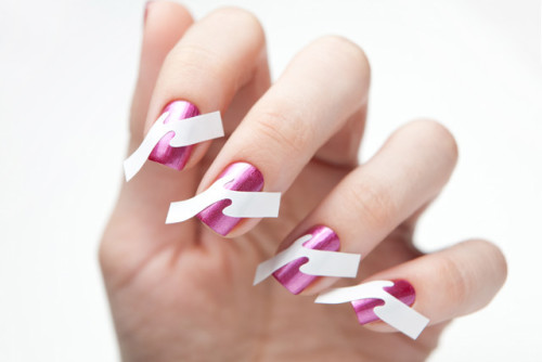 Для изготовления Вам может потребоваться скотч. Одинаково хорошо с ролью шаблона справится как малярная, так и простая канцелярская липкая лента. Однако с малярным скотчем работать проще – он не так сильно расползается при отрезании, не такой тонкий, а также на нем можно сначала нарисовать желаемый шаблон. Не рекомендуется использовать изоляционную ленту и двусторонний скотч. Они чересчур липкие и оставят на лаке или ногте следы, а двусторонний скотч к тому же неудобно резать из-за достаточно толстой защитной плёнки.