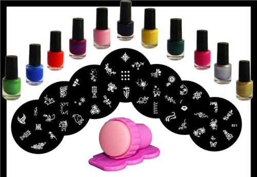 В продажу поступают наборы, которые содержат весь необходимый материал для создания изысканного дизайна маникюра. Обычно, производители комплектуют наборы несколькими пластинами с разнообразными изображениями.