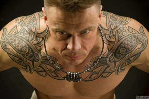 Место нанесения наколки зависит от размера эскиза. Мужчины предпочитают размещать изображения трайбл на руках, спине, ногах.