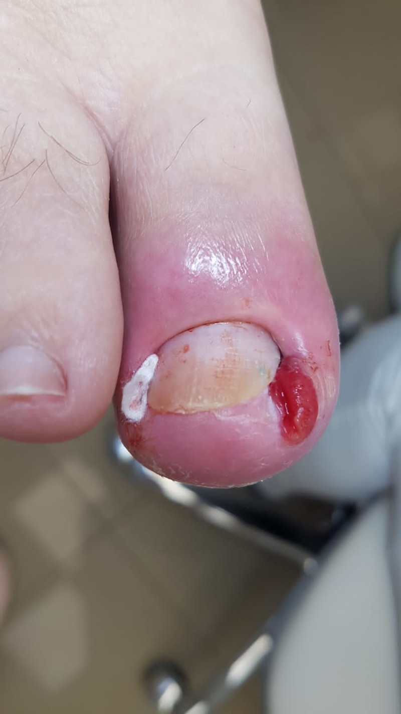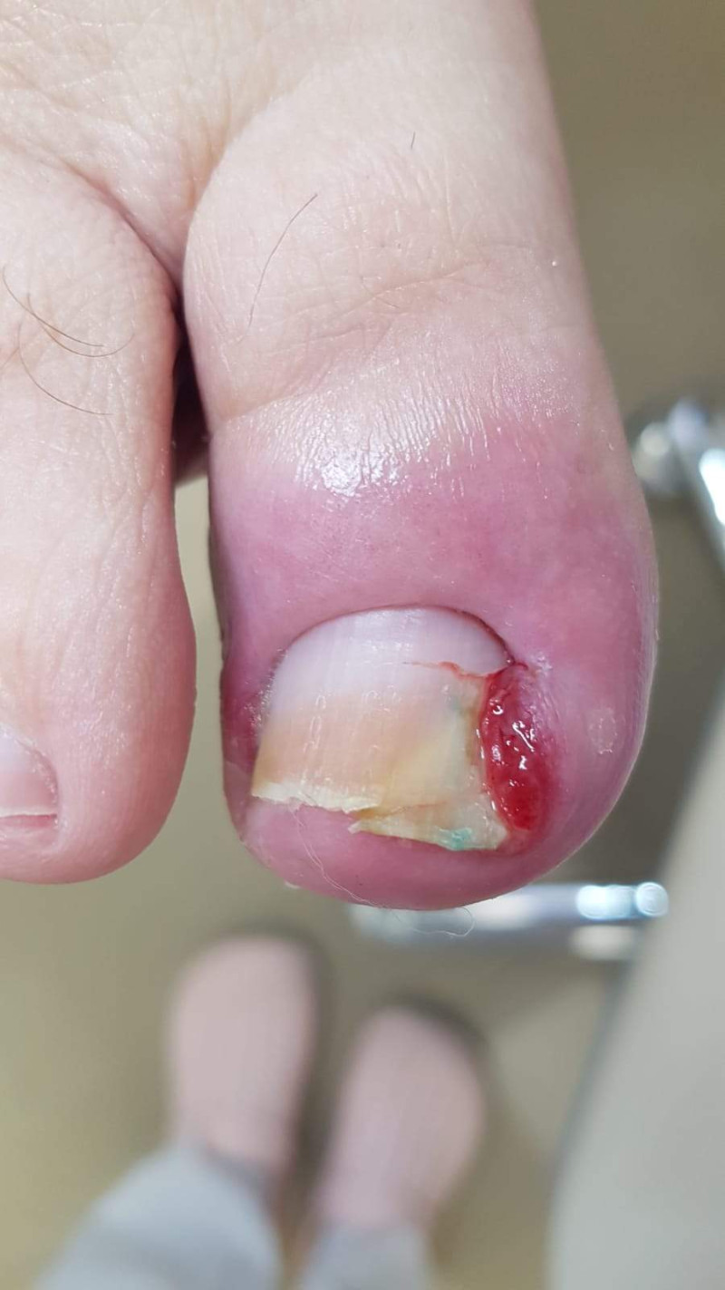 Была проведена необходимая обработка раны и вросшего угла ногтевой пластины.