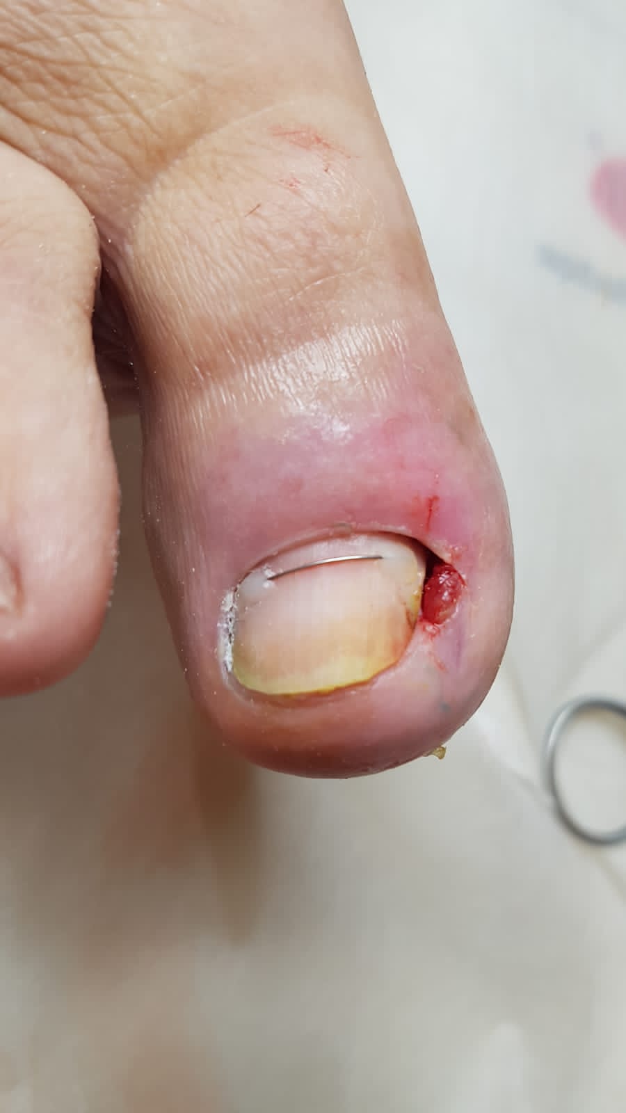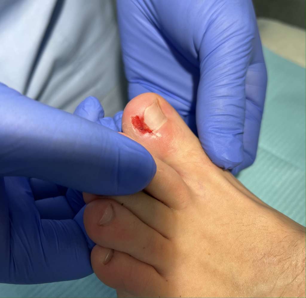 Была проведена необходимая обработка раны и вросшего угла ногтевой пластины.