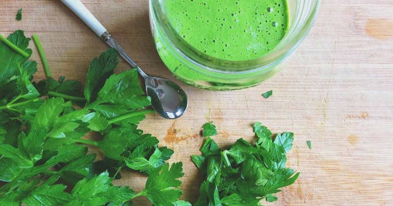 - Измельченную зелень смешать с кефиром (1:1) и сделать маску. Состав можно наносить не только на лицо, но и шею, зону декольте. Через 20-30 минут смыть.