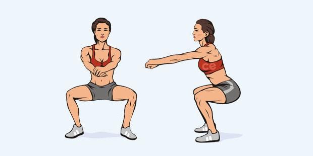 - глубокие приседания – 3 подхода по 8-12 повторений;