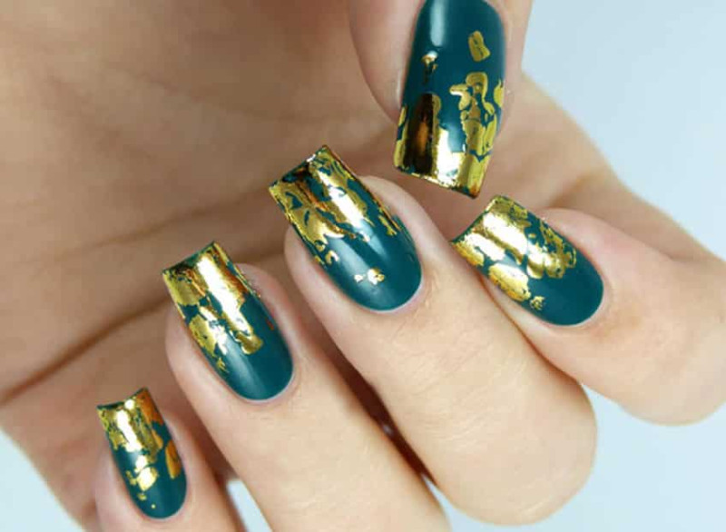 Любая фольга — хороший способ украсить ногти, особенно если включить фантазию и нанести какой-нибудь необычный рисунок.