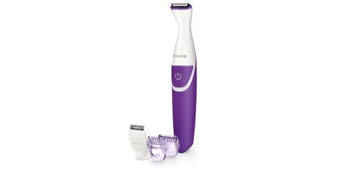 - характеристики: женский, для стрижки и бикини-дизайна, есть насадка для коррекции длины волос, лезвия из нержавеющей стали, влагозащищенный корпус;