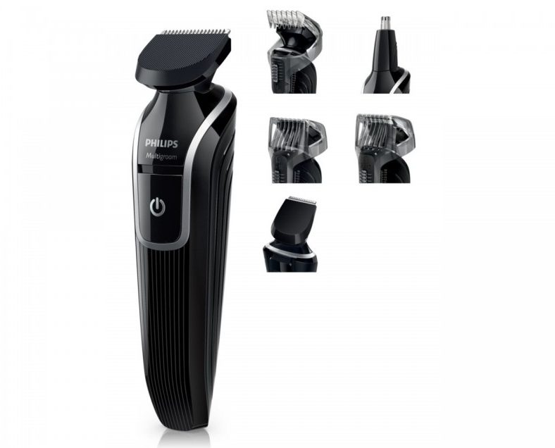 - Philips BRT 382/15, Китай . Стоимость — 1800 рублей. Работоспособен как на сухой коже, так и во влажной среде. Оборудован насадками для бритья, стайлинга, подравнивания. Портативный, как и подавляющее большинство триммеров, поэтому работает от батарейки.