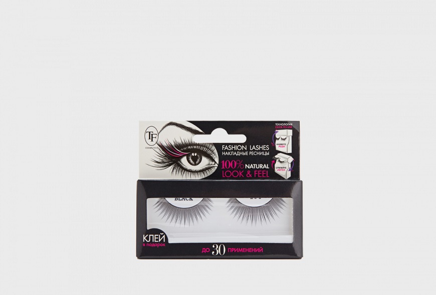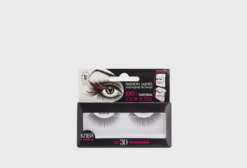 Длина ресниц по всей основе не одинакова – к внешнему углу глаза ворсинки удлиняются. Это помогает распахнуть взгляд и придаёт ему выразительности. Изделие многоразовое, поэтому его можно несколько раз фиксировать и снимать. Клей идёт в комплекте, но его возможно докупить отдельно, выбрав наиболее подходящий для себя вариант.