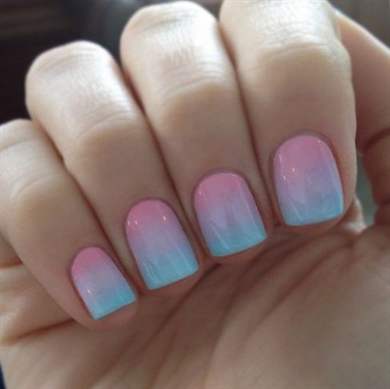 Маникюр в технике омбре достиг пика своей популярности. Он одинаково хорошо смотрится и на коротких и на длинных ногтях. Суть его заключается в плавном переходе с одного цвета на другой. Если правильно подобрать цвета, то можно зрительно удлинить короткие ногти. Главное здесь, чтобы в этом случае край ноготка имел более темный цвет, а основание было светлее. Такой маникюр делается с помощью спонжа, на который наносятся разные цвета, а затем они переносятся на ноготь.