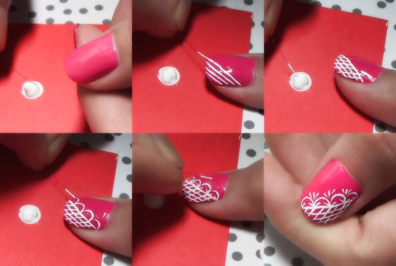 Инструкция пошагового рисования на ногтях этим лаком чрезвычайно проста и незатейлива. Вам необходимо будет просто обмакнуть кисточку в бутылочку с лаком выбранного цвета и нанести желаемый узор. Не забудьте перед этим нанести базовое покрытие контрастного оттенка.