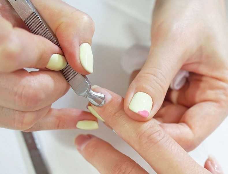 инструмент в любую зону ногтя и начинайте им водить по всей пластине, задевая и разнося