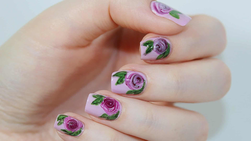 Уже после первых попыток рисовать стоит попробовать изобразить розы. Цветы рисуются при помощи обычной кисточки. Те шикарные цветы, которые можно увидеть в дизайне именитых мастеров, в действительности создаются обычными полукругами. Оцените эти розы на ногтях (фото пошагово).
