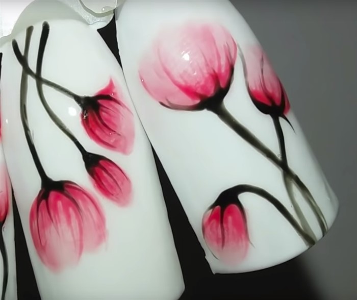 Мотивы из цветочков на ногтях очень разнообразны и могут быть сделаны любыми способами: