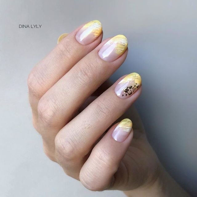 Если вы предпочитаете легкий лаконичный маникюр без излишеств в дизайне, то «Мазки кистью» в стиле «минимал» – это, то что вам нужно. Например, можно нанести светлую базу на все ногти, и на одном или двух ноготках сделать пару аккуратных еле заметных мазков.
