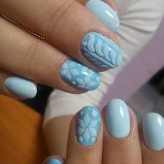 Этот вариант ногтевого дизайна очень схож с рисунком теплого зимнего свитера. Такая техника выполняется с помощью специального акрилового геля и дотса. Этим приспособлением аккуратно вырисовываются узоры на пластинах. Для создания такого нейл-дизайна понадобится много усидчивости и терпения. Перед тем как делать такие объемные рисунки на ногтях, лучше предварительно хорошо потренироваться.