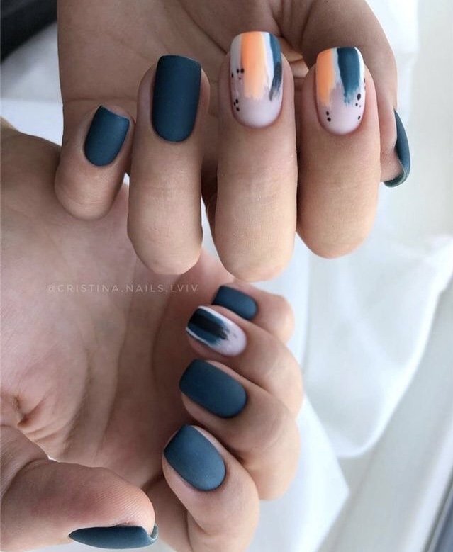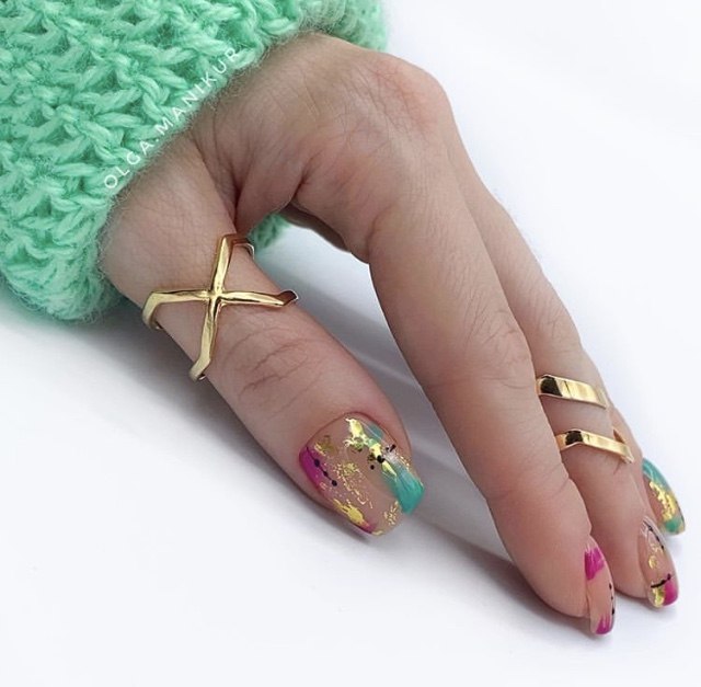 Сочетание дизайна «Мазки кистью» с другими видами дизайна ногтей