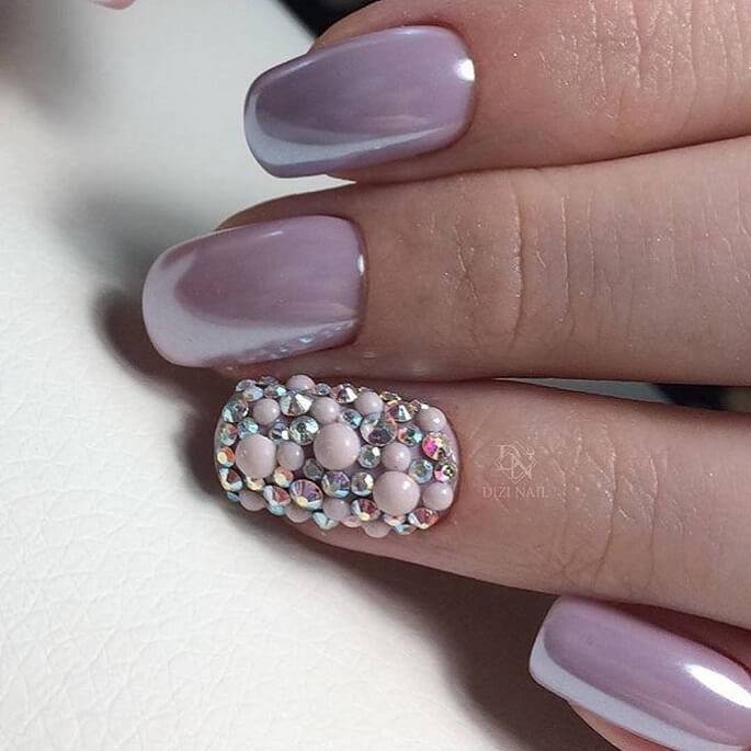 Чтобы маникюр не выглядел безвкусно, камнями и бусинами украсьте один палец