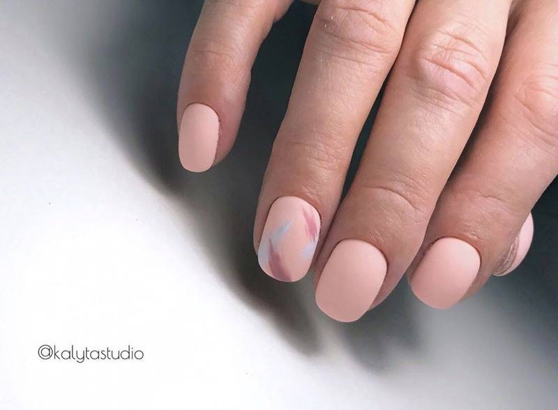 Если хочется утонченности, можно покрыть ногти матовым топом. Мазки на ногтях под матовым топом смотрятся как игрушечные.