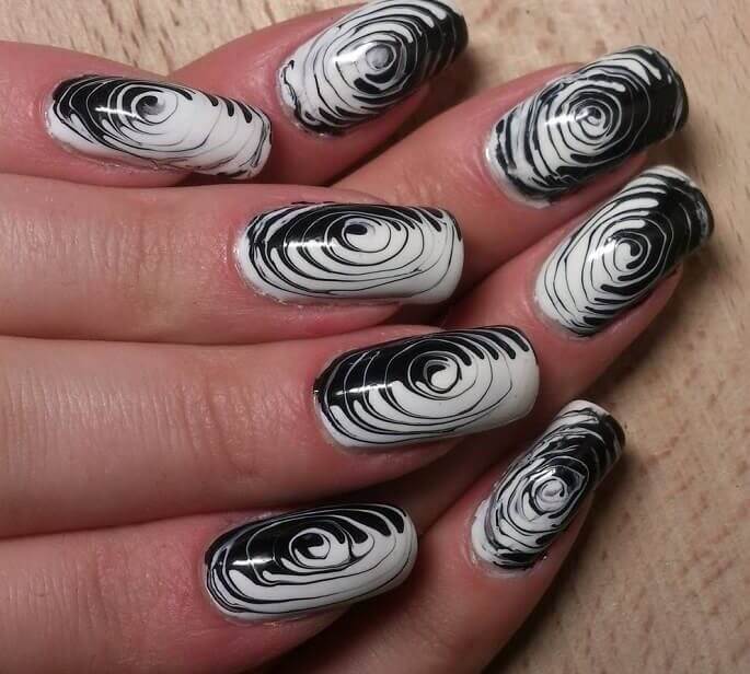 Абстрактный дизайн ногтей не менее эффектная и популярная техника дизайна. Часто мастера маникюра объединяют несколько техник, чтобы получить что-то новое эксклюзивное и быть на шаг впереди конкурентов. Вы тоже можете воспользоваться таким приемом и получить свой эксклюзивный узор на ногтях.