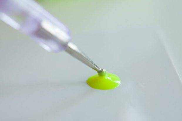 - Небольшое количество лака или краски капнуть на фольгу или специальную подставку.