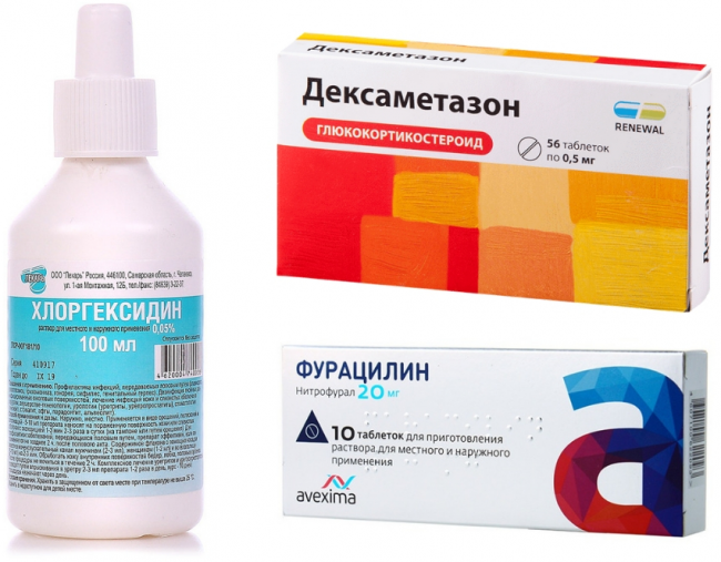 После приемов пищи нужно полоскать рот теплой водой с добавлением антисептика – настойка календулы, шалфея, фурацилина. Спиртовых растворов достаточно чайной ложки, а водных потребуется 20 мл. Для приготовления фурацилинового полоскания таблетку препарата растворяют 100 мл кипятка и оставляют до остывания.