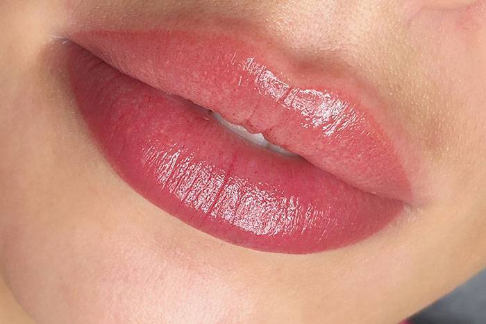 Мастер заполняет всю поверхность пигментом, а это создает эффект немного ярко накрашенных губ. Такая техника популярна у особ, которые стремятся полностью изменить свой натуральный оттенок губ. Если специалист подберет правильный оттенок пигмента, то он может создать на ваших губках сексуальный объем, а также придать немного блеска. Губы после перманентного макияжа с эффектом помады не требуют больше использования губнушки.