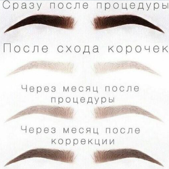 Важно помнить, что величина и форма бровей могут быть немного ярче и насыщеннее в течение нескольких дней после процедуры. Это нормально и связано со временным отеком и скорость заживления кожи