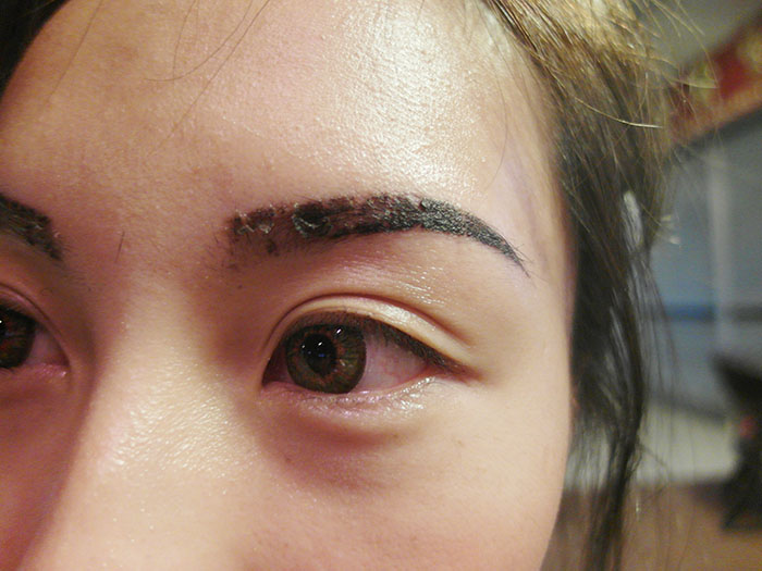 - Принудительным путем удалять корочки с поверхности надбровных дуг. Если убрать корочку раньше, чем она будет готова разъединиться с кожей, можно нарушить процессы регенерации тканей. Это чревато возникновением кровотечения, который смоет часть пигмента, занесением инфекции. Корочки должны отпасть самостоятельно, это будет свидетельством о нормальном протекании восстановительного процесса.