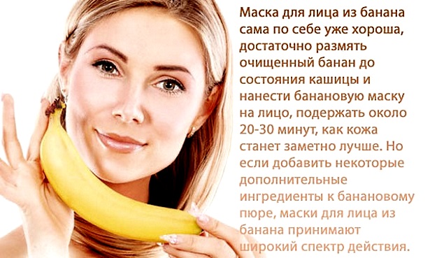 - Банановая маска для лица от зимнего холода – растолочь хорошенько половинку спелого банана, затем добавить к получившейся кашице 7 капель оливково качественного масла, хорошо все перемещать до однородной массы. После чего нанести на все лицо и область глаз, а так же и шею