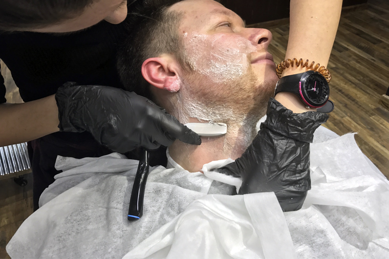 Только в барбершопах можно заказать бритьё опасной бритвой. Мастерство владения таким станком оттачивается на воздушных шариках: чтобы научится правильным движениям и нажиму, есть специальные курсы, где ученики натурально «бреют» надутые воздушные шары.