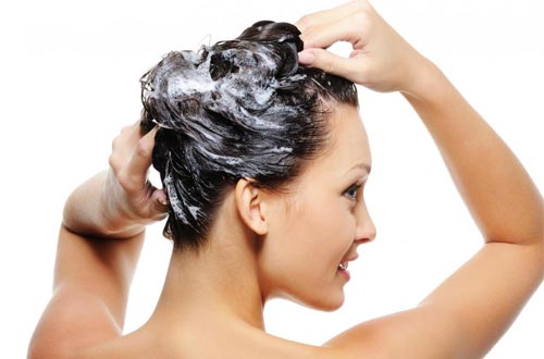 Перед мытьем волосы следует расчесать, чтобы во время мытья они не запутывались. Выбираем шампунь для своего типа волос. Наливаем его в ладонь, вспениваем и массирующими движениями наносим на кожу головы. После этого смываем теплой водой.