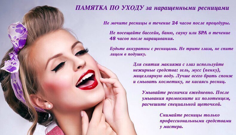 Памятка по уходу за нарощенными ресницами. Процедура по наращиванию ресниц