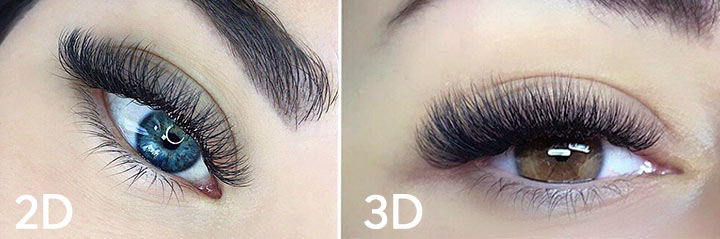 - 2-d и 3-d объем – наращивание происходит путем приклеивания на одну натуральную ресницу 2 – 4 синтетических, в итоге взгляд становится выразительным и неотразимым. Данный вид самый дорогостоящий и трудоемкий.