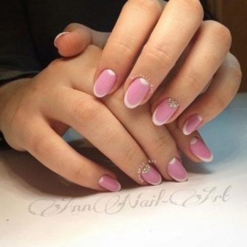 Очень красиво будет смотреться на зрелых ноготках французский маникюр с белой или бледно-розовой полоской на краю ногтя. Аналогичные тона можно выбрать и для оформления лунного маникюра.