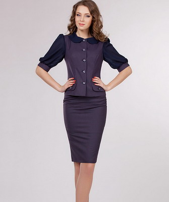 Одежда деловой женщины должна быть строгой. Деловой костюм из хороших тканей позволит хорошо выглядеть в бизнесе и подчеркнет респектабельность своей владелицы. Возможно ношение юбок чуть ниже колена, но не выше! Брюки оптимальный вариант. Одежда не должна быть ярких расцветок, она будет отвлекать коллег по работе от дел и смотреться слишком вызывающее. Оптимальны серые и синие тона, возможен цвет баклажана.