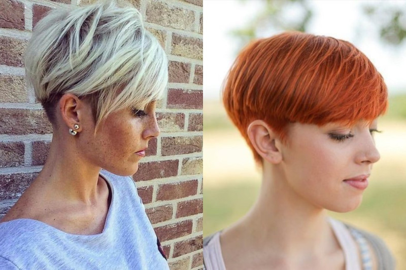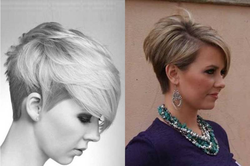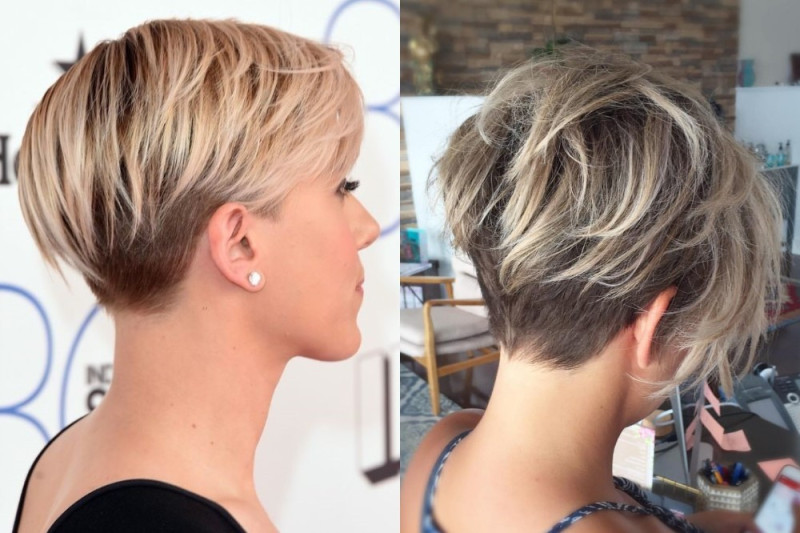 - На фото видно, что в сочетании с укороченной челкой, лицо визуально омолаживается, что превращает стрижку в универсальный вариант для женщин любых возрастов.