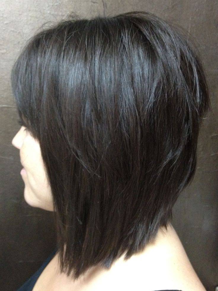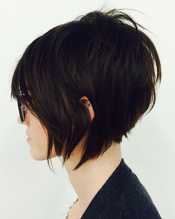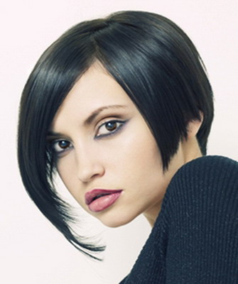 Секрет модной прически кроется в удлиненных и отлично вписывающихся в силуэт боковых прядях. Линия нижнего среза при этом становится плавной, и заостряющейся к кончикам прядей обрамляющих лицо. Эффектное оформление затылка красивым мыском только усиливает сложность рисунка. Такие варианты прически отлично смотрятся на абсолютно гладких от природы или выпрямленных волосах – графика силуэта наиболее точно будет подчеркнута только в этом случае.