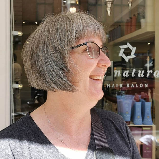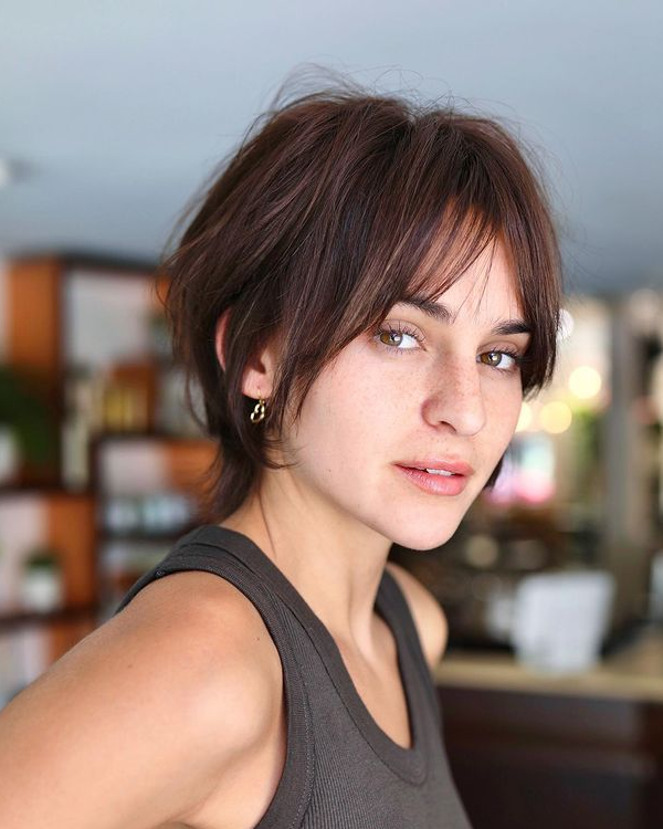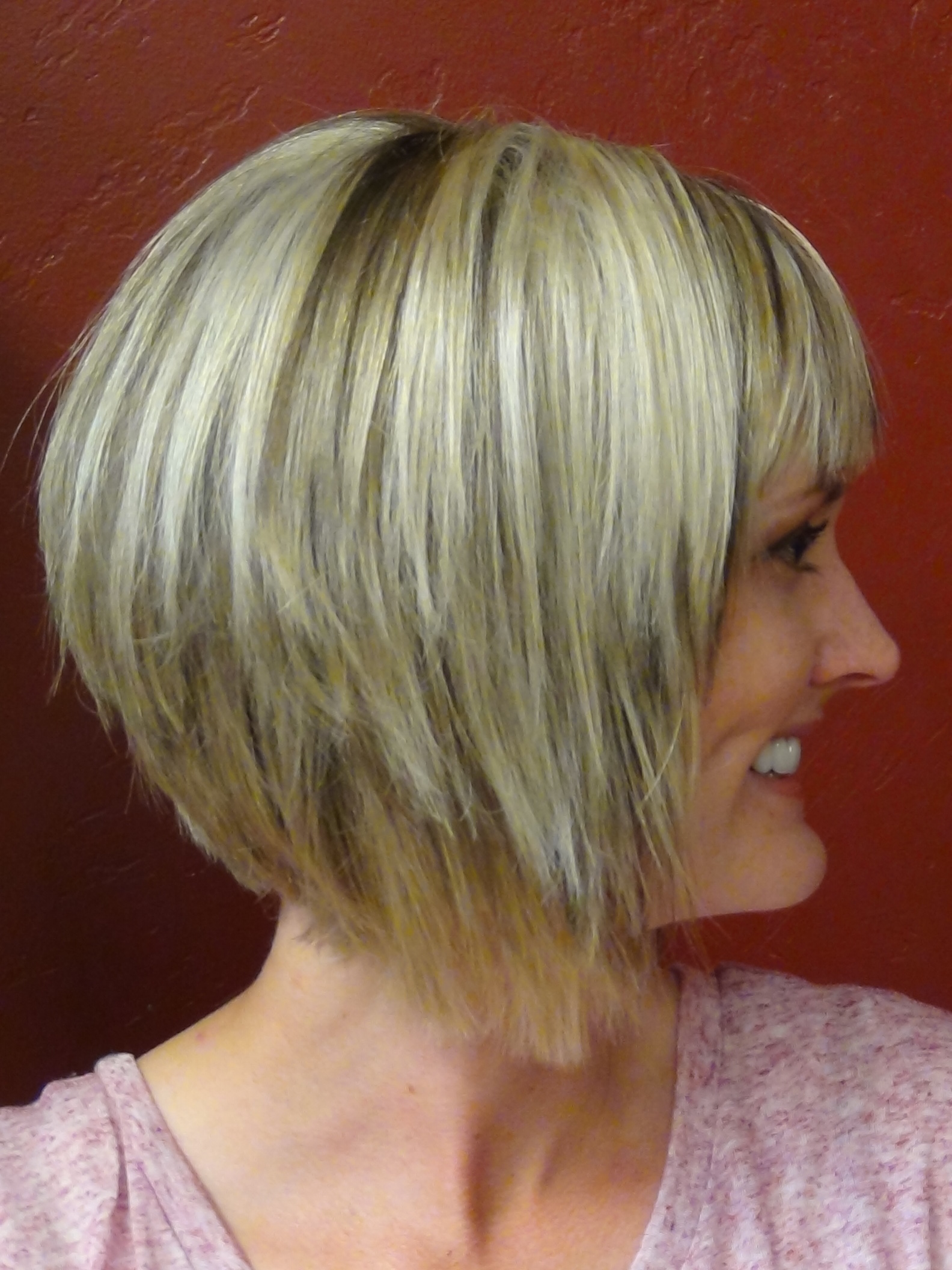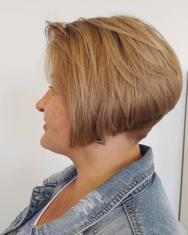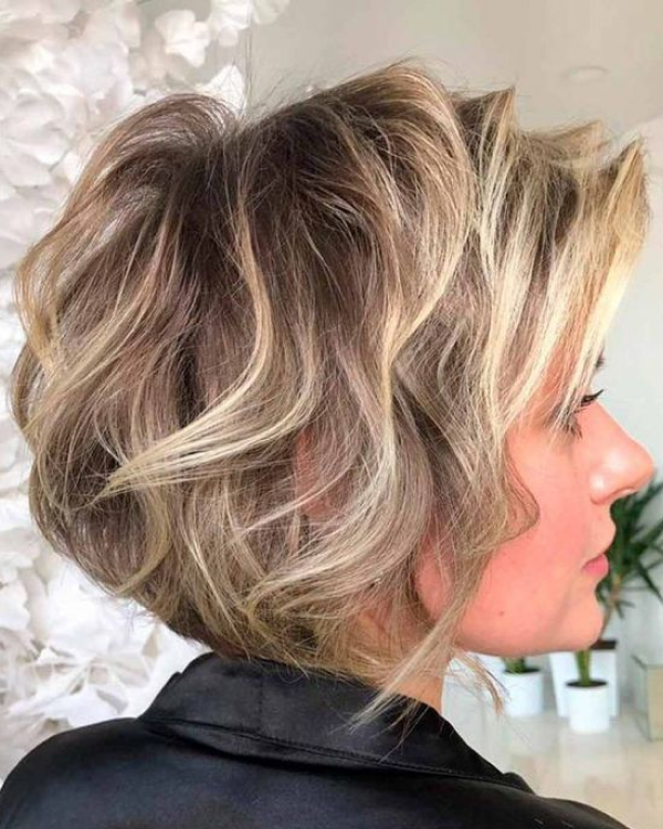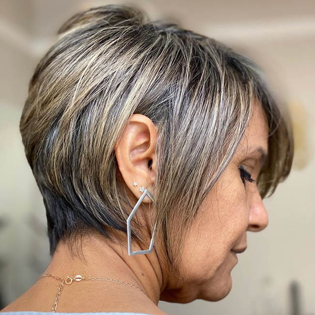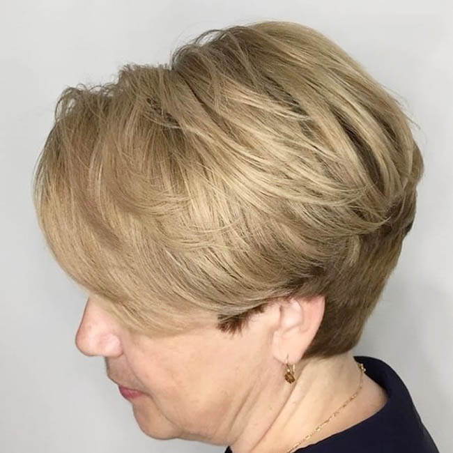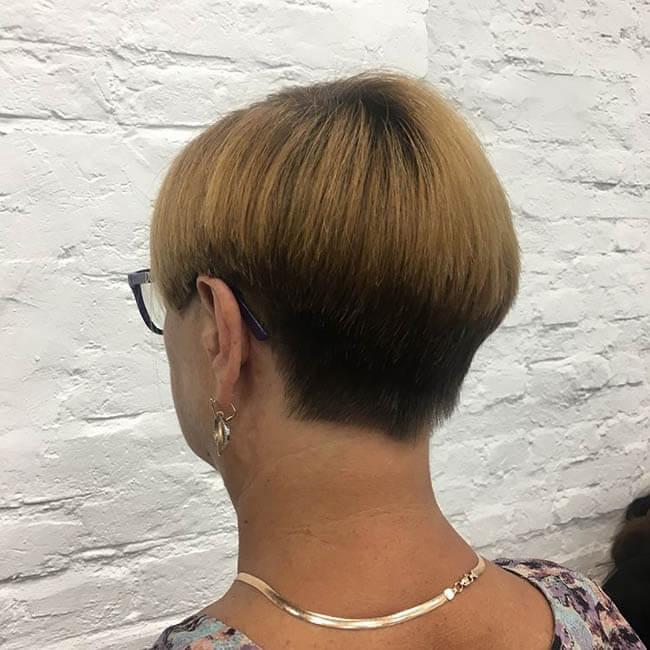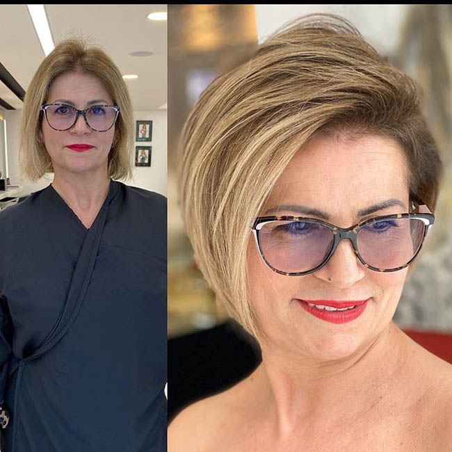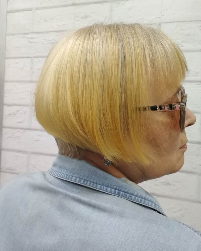 - На фото видно, что в сочетании с укороченной челкой, лицо визуально омолаживается, что превращает стрижку в универсальный вариант для женщин любых возрастов.