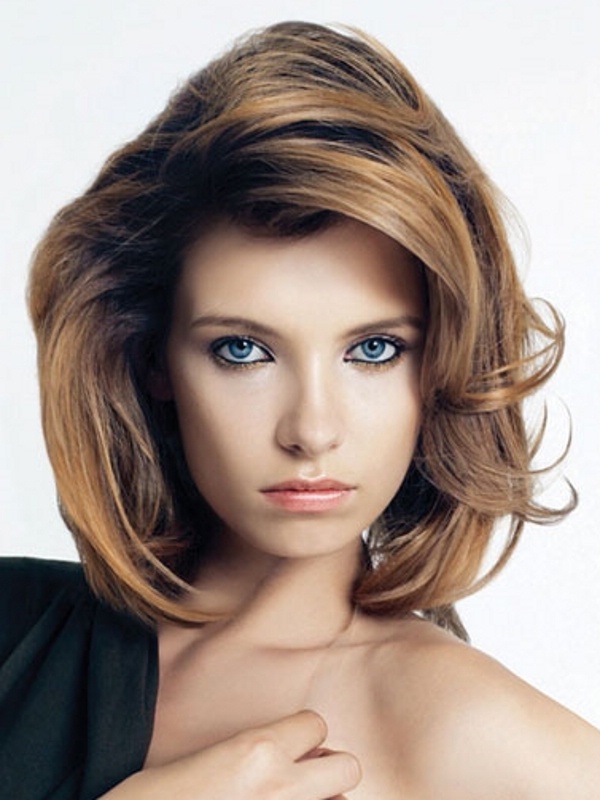 косой пробор — отличный способ скрыть любые дефекты, в том числе диспропорции лица, основной объем с помощью мусса или пенки делается на макушке, удлиненные срезы необходимо выровнять, направление зависит от настроения, завернуть концы можно как во внутрь, так и наружу;