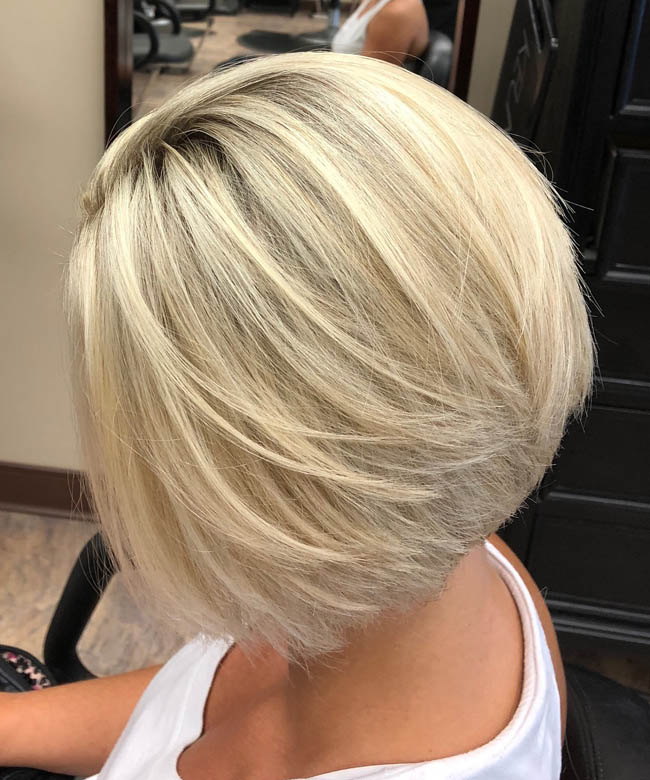 На длинных волосах, когда длина должна быть на уровне плеч или чуть ниже. При этом нижний срез имеет графическую линию. Изначально укладка не предполагала наличие челки, однако со временем прическа претерпела некоторые изменения и украсилась некоторыми дополнениями. Наиболее выигрышно она смотрится на гладких волосах со здоровым блеском. Подходит всем типам лица.