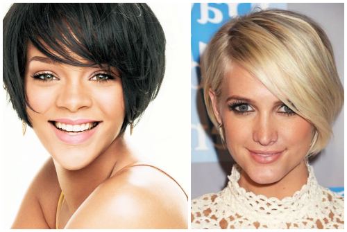 Асимметрия рекомендуется в первую очередь дамам с резковатыми чертами лица и для яркого цвета волос. Удлинение можно подчеркнуть косой челкой и неровным пробором.