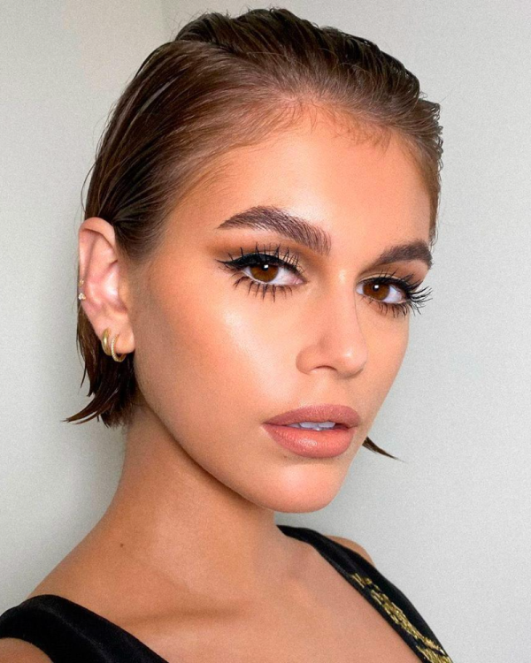 В другом варианте актуальным вариантом станет уложить челку небрежно набок. Если челки нет, то с помощью геля можно создать эффект мокрых волос и уложить их назад.