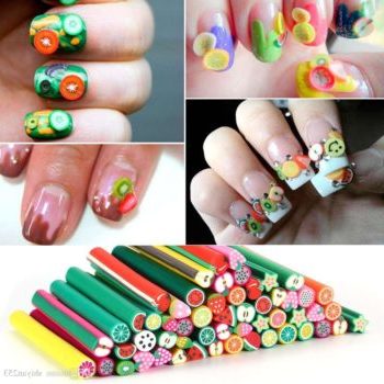 Мягкие и гибкие украшения передают объемные изображения от цветочков и бабочек до мультипликационных героев. Специальная глина продается в форме нарезанных фрагментов, из которых можно создать маленький шедевр личного маникюра.