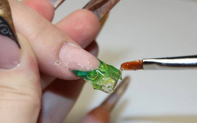 - ноготь покрывается слоем геля;