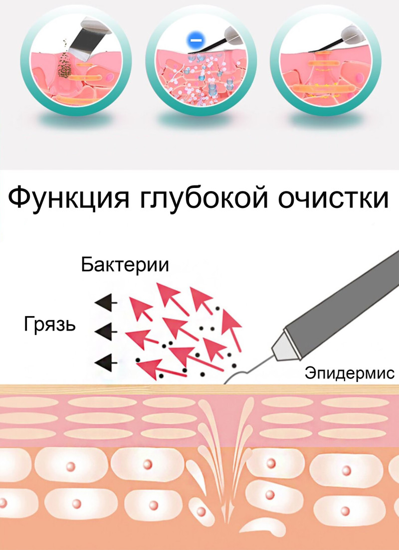 - Работа аппарата в режиме ультразвукового пилинга. Аппарат для ультразвукового пилинга кожи лица производит высокоинтенсивные волны, мягко очищая кожу от старых, расслоившихся клеток, деликатно удаляют угри и другие загрязнения кожи. Кожа мгновенно становится гладкой, чистой, со свободными, очищенными порами и фолликулами. Эффективно очищает загрязнения кожи (угри, прыщи, камедоны), лечит проблемную кожу, уменьшает поры, обладаем отбеливающим свойством. Способствует разглаживанию рубцов и растяжек. При длительном использовании ультразвуковая чистка лица обеспечивает деликатную микрошлифовку кожи.