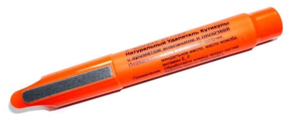- карандаш для удаления кутикулы, которым необходимо покрыть все места, где образовалась ороговевшая ткань;