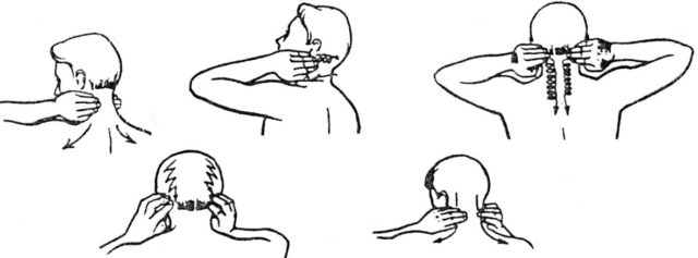 Начинают массаж шейно-воротниковой зоны с легких поглаживаний и выжиманий: производятся горизонтальные и вертикальные движения туда-обратно, эта манипуляция занимает около 3-4 минут. Следующий этап – растирание, которое можно совмещать с разминанием тканей. Продолжительность этой стадии составляет около 7-12 минут.