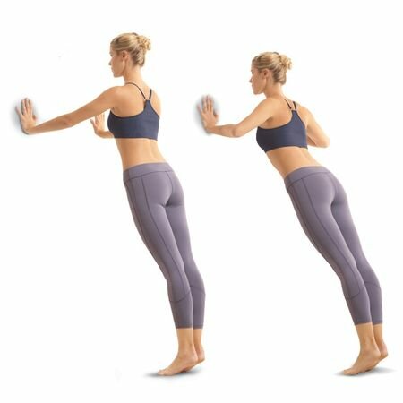 - слегка наклоняемся вперед и упираемся ладонями в стену (руки должны быть на уровне груди);