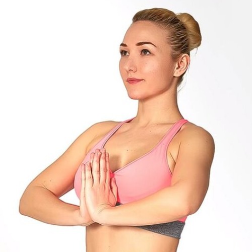- сводим ладони перед грудью (по этой причине упражнение еще называется «молитва»);